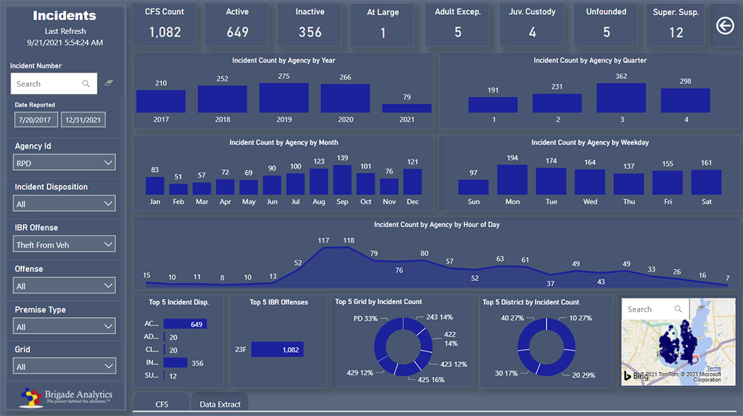 Getting data into a format that is digestable takes work. Doing so with complex analytics takes even more work. Brigade helps agencies see CAD/RMS data in a completely new way.